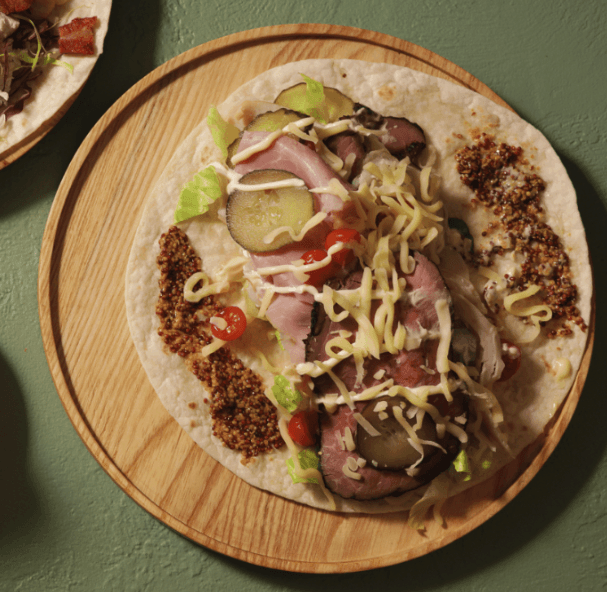 * If using our larger Food Service 10in Sourdough Wraps, 10in Flour Tortillas or GF Wraps, increase the ingredients slightly to allow for the large diameter. GF Wraps, please ensure you follow special packet warming instructions and check that your ingredients are all GF.