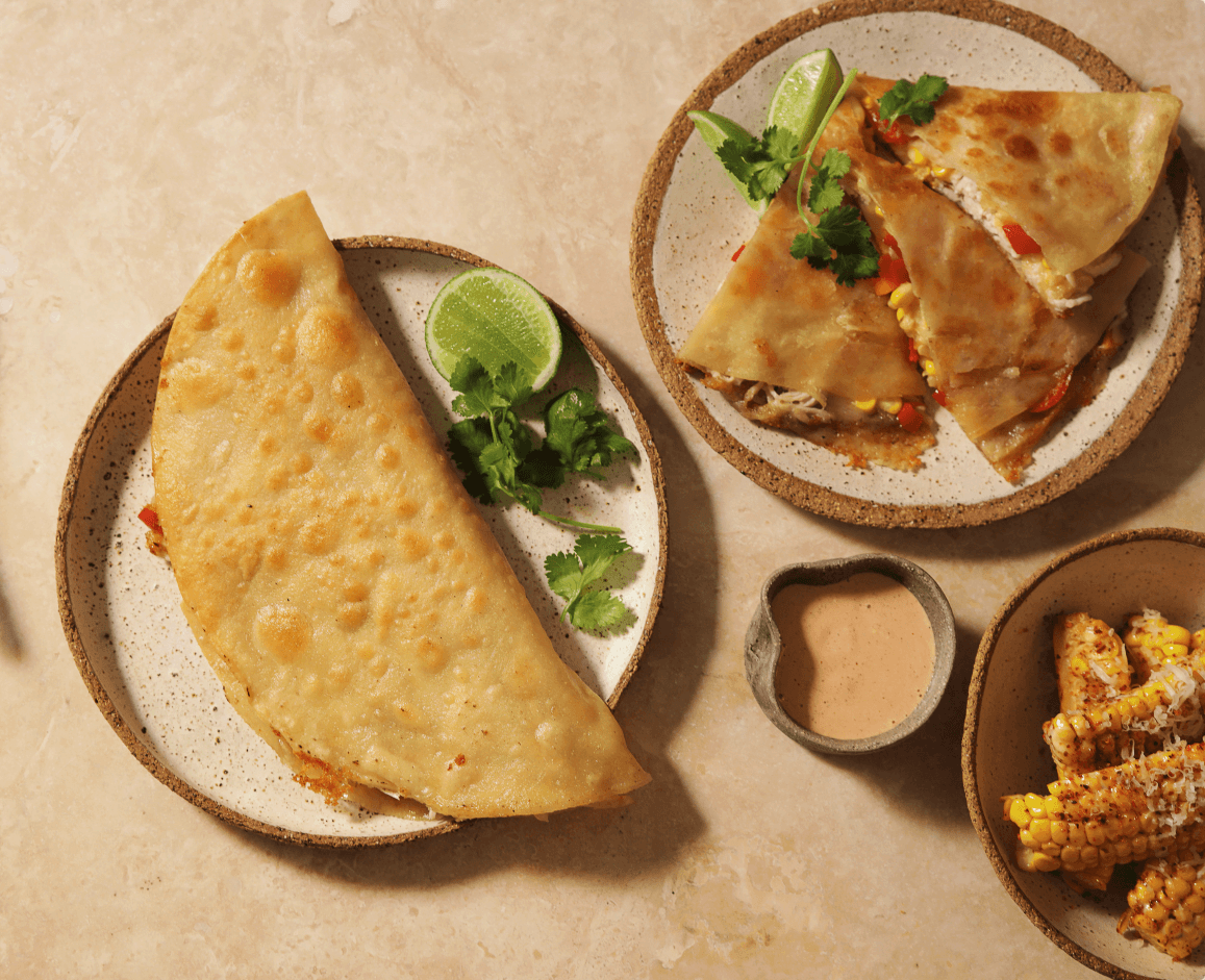 Cook each quesadilla for about 30–60 seconds per side, until golden brown. Flip carefully when the underside reaches a golden color.